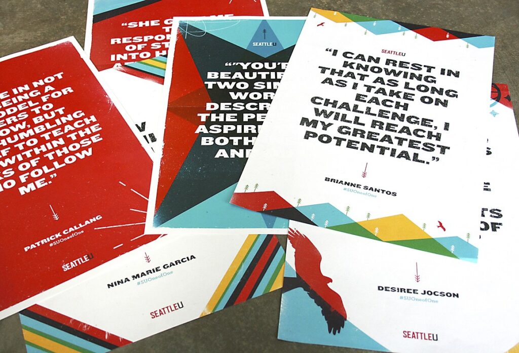 Seattle University stood out by offering newly accepted students personalized posters, each showcasing a portion of their application essays.
